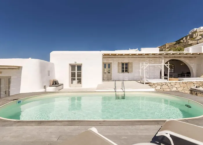 Seaside Villa med 3 sovrum, som ligger ungefär 25 minuters promenad från Mykonos arkeologiska museum, har soldäck, terrass och trädgård för gästerna. Villan med 3 badrum, som ligger cirka 10 km från Mykonos flygplats, erbjuder biluthyrning.